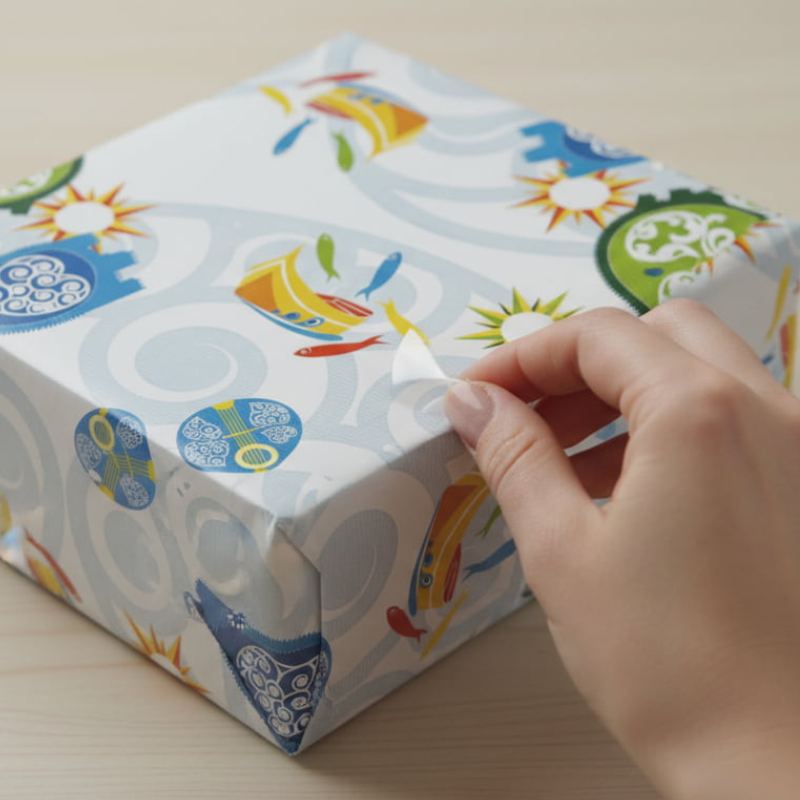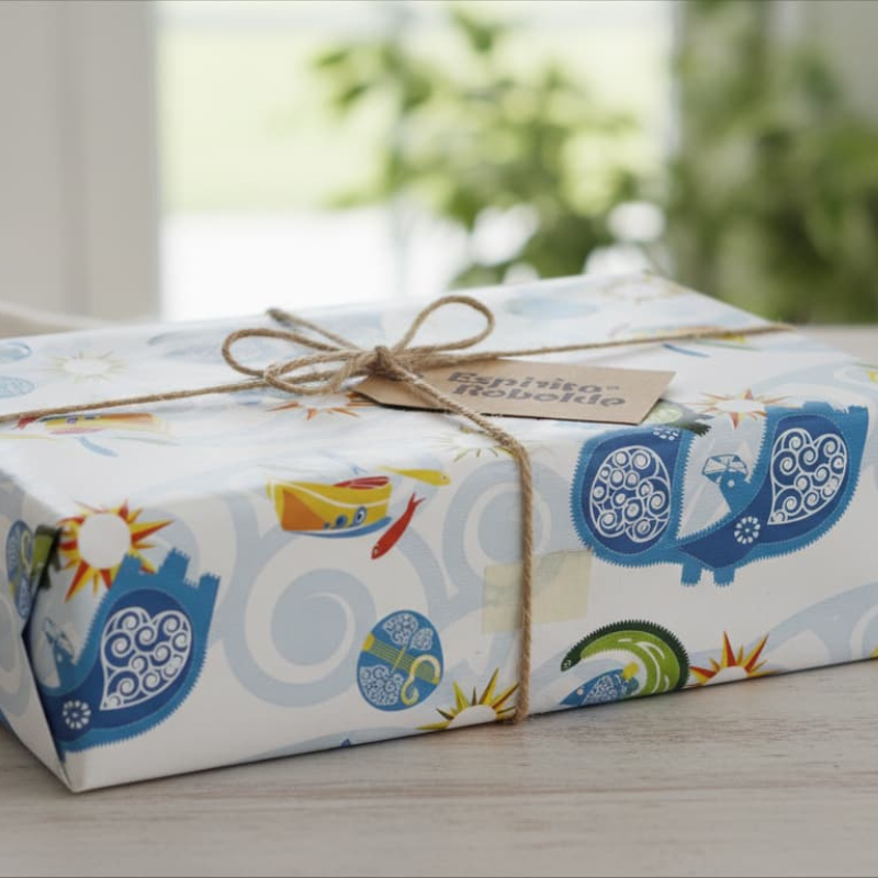 Papier cadeau aux motifs marins, parfait pour des cadeaux estivaux ou souvenirs de vacances.