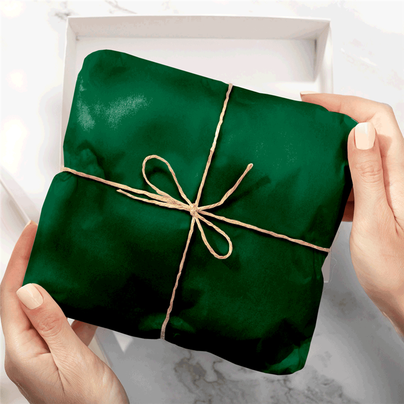 Papier de soie vert forêt polyvalent, idéal pour l’emballage et la décoration.