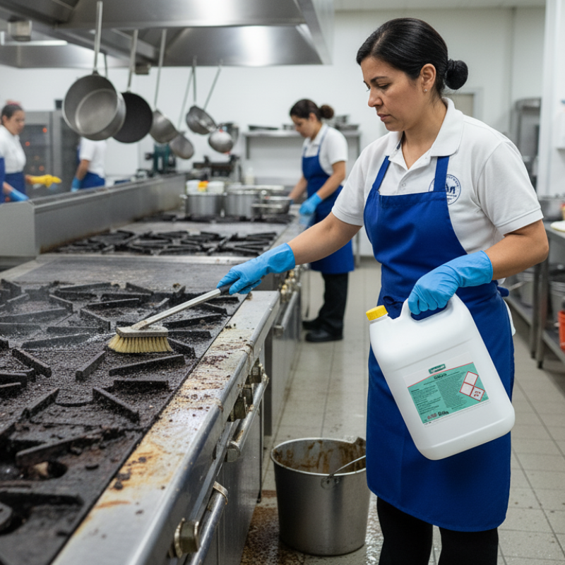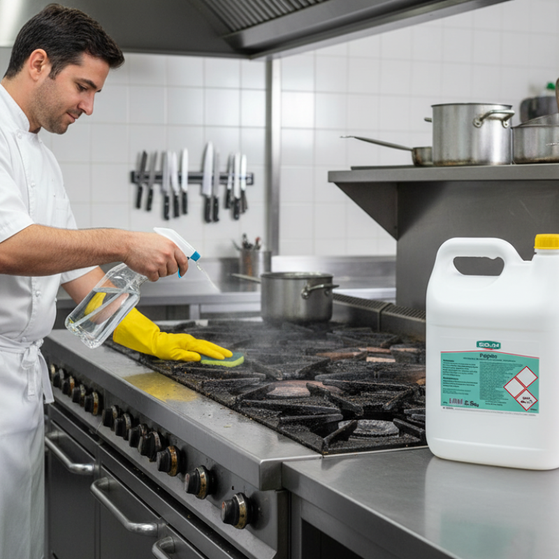 Dégraissant alcalin spécialement formulé pour éliminer efficacement les graisses sur cuisinières industrielles, sûr pour les surfaces en fer et acier inoxydable. Commandez dès maintenant !