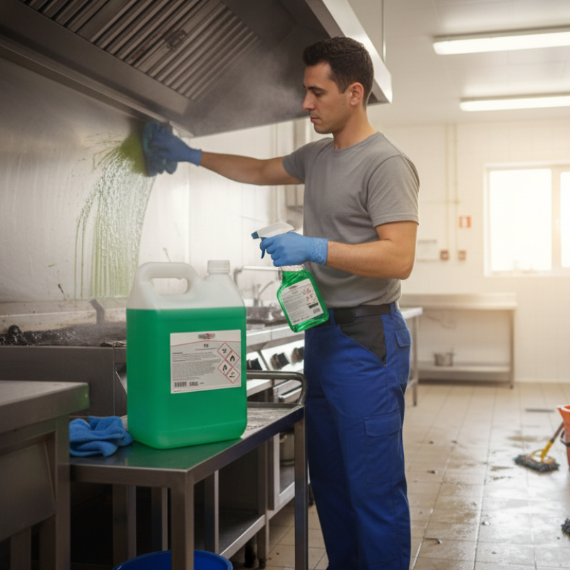 Dégraissant Alcalin Multi‑usage 5Kg est un liquide vert clair légèrement parfumé, de pH alcalin modéré, conçu pour éliminer les graisses efficacement.