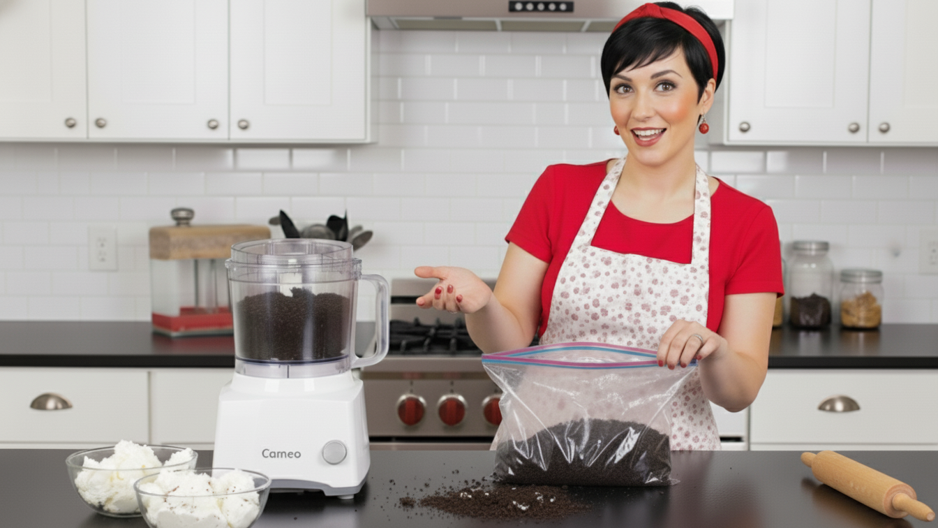 Separate il ripieno bianco dei biscotti Oreo. Tritate solo i biscotti in un robot da cucina oppure metteteli in un sacchetto di plastica e schiacciateli con un mattarello fino a ottenere una consistenza fine e uniforme.