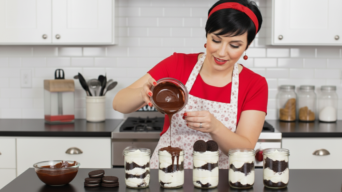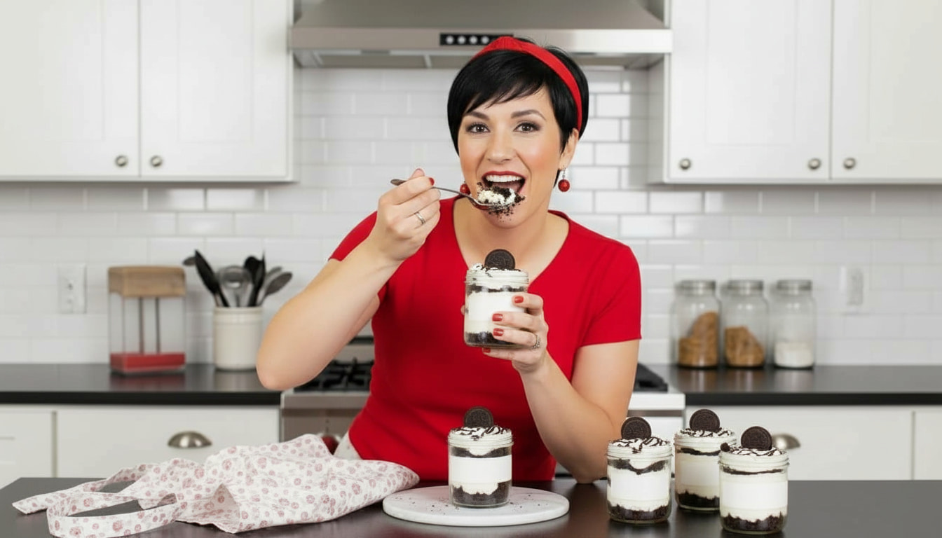 Servite la vostra cheesecake Oreo nel vasetto di vetro e deliziatevi con questo dessert cremoso, pratico e irresistibile.