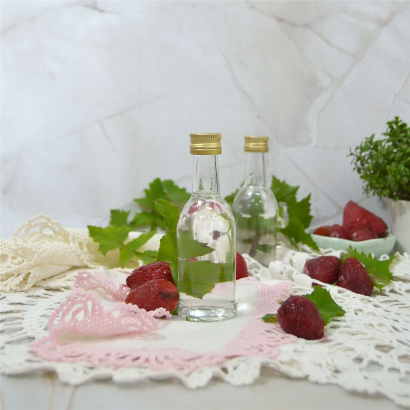 Bottiglie di vetro in miniatura. Insieme ai nostri accessori ti permettiamo di creare la bottiglia in vetro perfetta per bomboniere, regali e campionari.