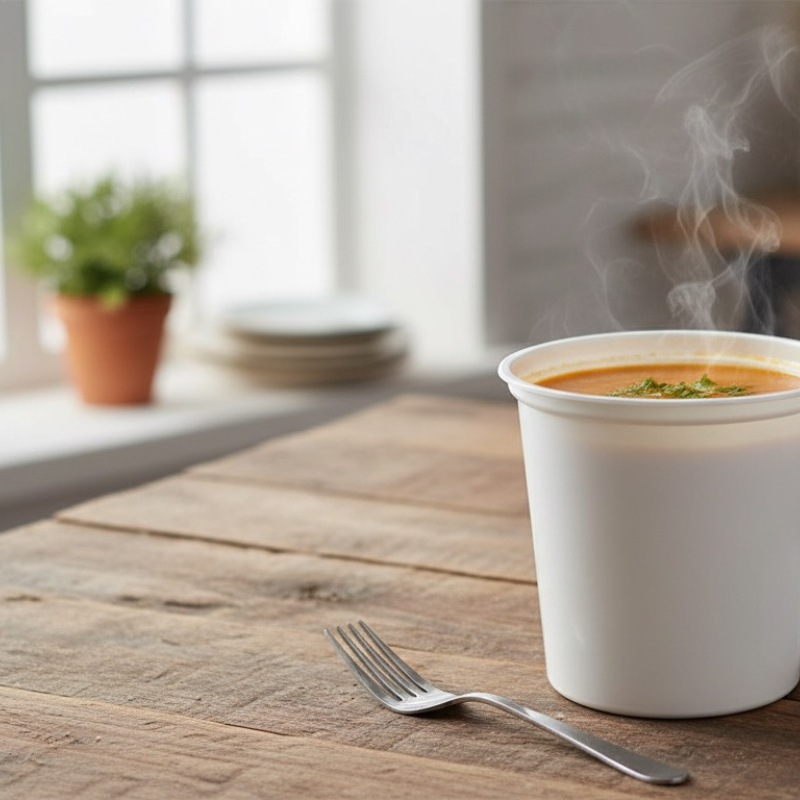 Ciotola di plastica bianca per zuppa da 1000ml, perfetta per take away e pasti più grandi.