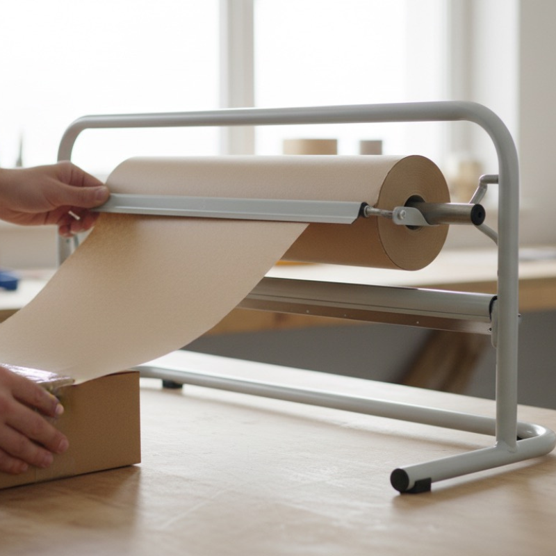 Distributore ecologico di carta da imballaggio con larghezza 70cm, ideale per confezionamento rapido ed efficiente.