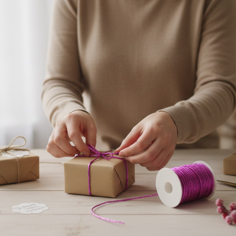 Il Nastro da Regalo tipo corda rosa è perfetto per chi desidera un tocco artigianale e sofisticato nei propri pacchetti.