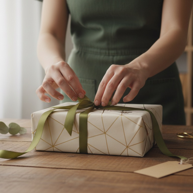 Il nastro di carta verde stellare ha una finitura dorata luminosa, perfetta per decorazioni raffinate e confezioni regalo di classe.