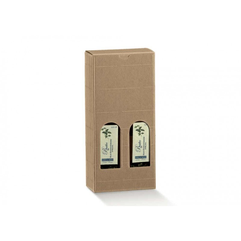 La scatola PETIT Avana, robusta ed elegante, è perfetta per contenere due bottiglie alte in modo sicuro.