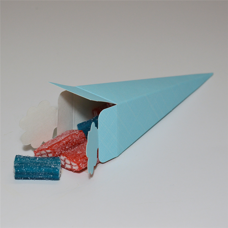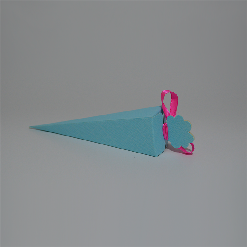 Scatola CONO seta celeste 155 presenta design a cono con finitura testurizzata "seta celeste". Ideale per confezioni raffinate di piccoli oggetti, dolci o bomboniere. Realizzata in cartone microcanalato resistente, offre montaggio semplice e area personalizzabile, unendo fascino e funzionalità.