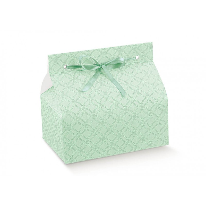 Scatola regalo CHIC con finitura trapuntata in colore verdino. Dimensioni: 140x90x60mm. Ideale per dolci eleganti o piccoli regali.