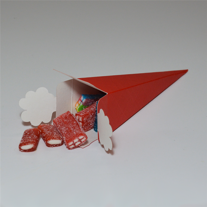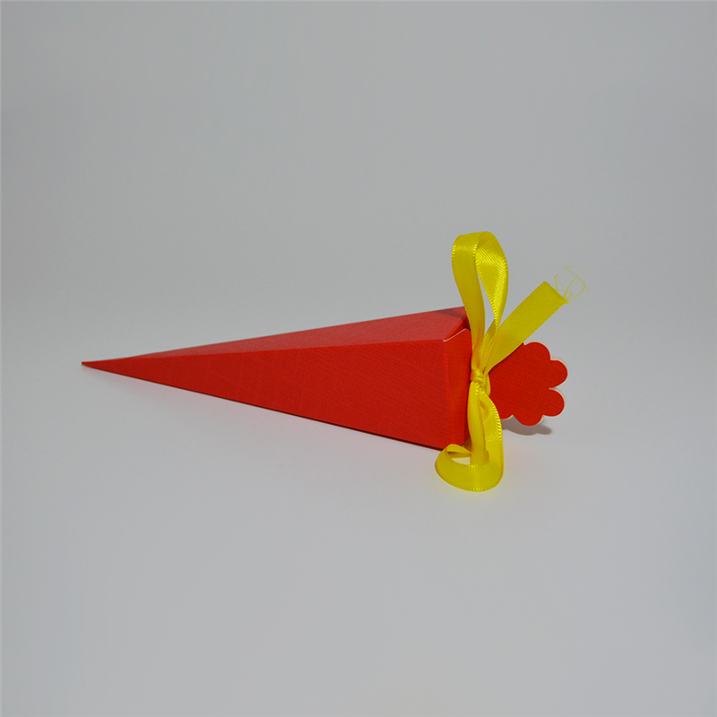 Scatola regalo - Cono Quad. Lino Rosso in forma conica realizzata in cartoncino rosso. La chiusura avviene con un nastro legato alla sommità (nastro non incluso). Ideale per confetti, articoli da regalo o confezioni personalizzate.