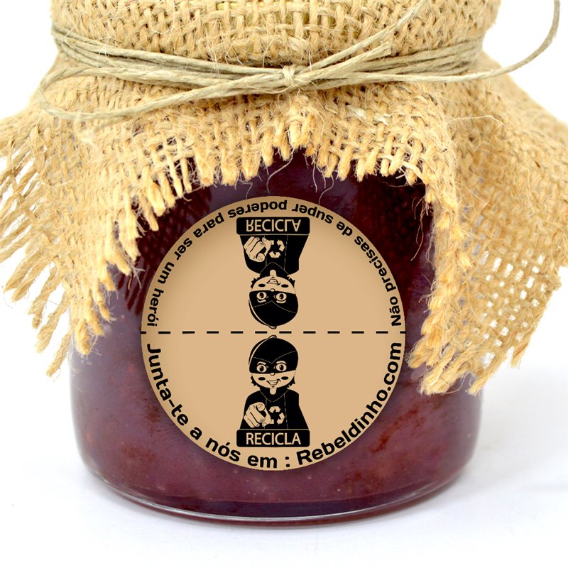Etichette bianche con design Rebeldinho, misura 40x40mm, perfette per conferire ai tuoi imballaggi un look professionale.