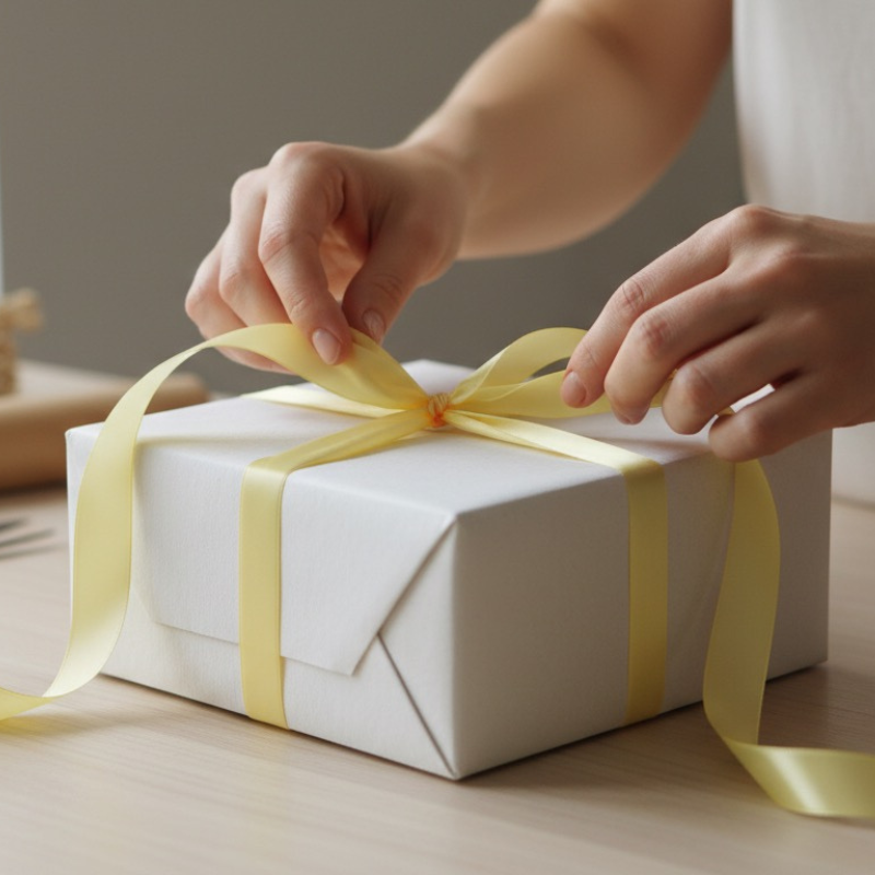 Dwustronna żółta wstążka satynowa dodająca wyrafinowanego i żywego akcentu dekoracjom, kokardom i pakowaniu prezentów.