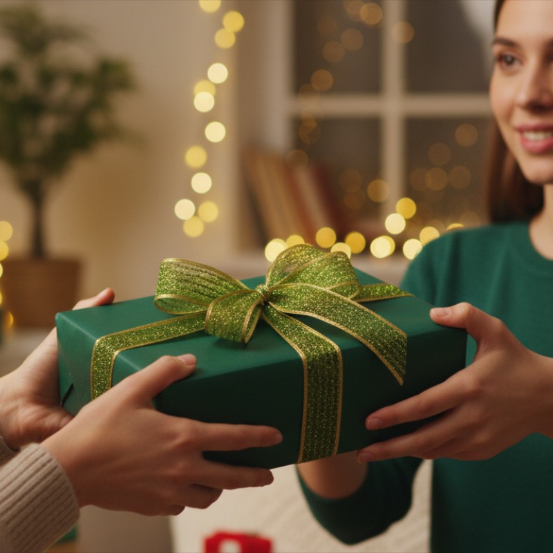 Zielona wstążka lipari ze złotym brzegiem, o luksusowym wykończeniu, idealna do eleganckich dekoracji.