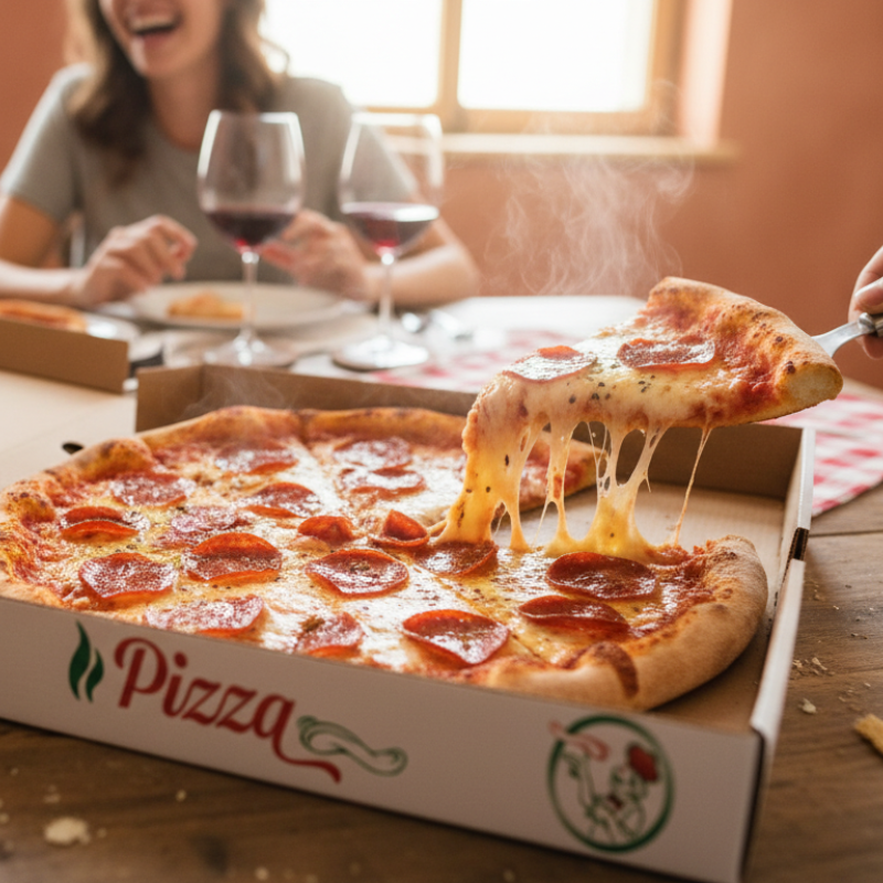 Funkcjonalne i Praktyczne: Zestaw 100 pudełek z tektury falistej na pizzę o wysokości 3,5cm, doskonałych na wynos lub dostawę. Chronią pizzę i utrzymują ciepło.