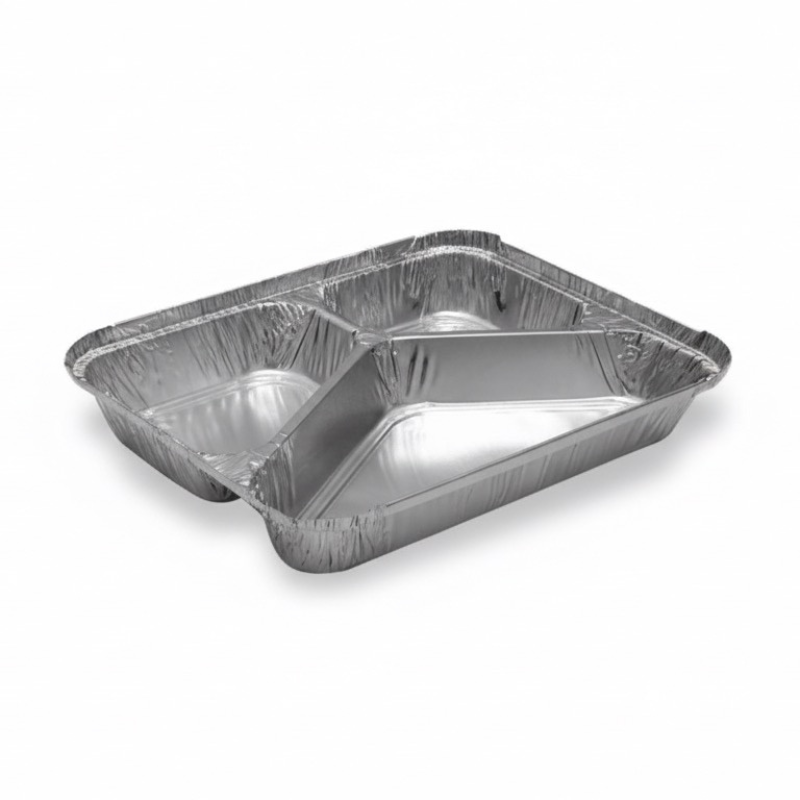 Wytrzymała forma aluminiowa 360ml/230ml/170ml z potrójną przegrodą, idealna do zorganizowanych posiłków.