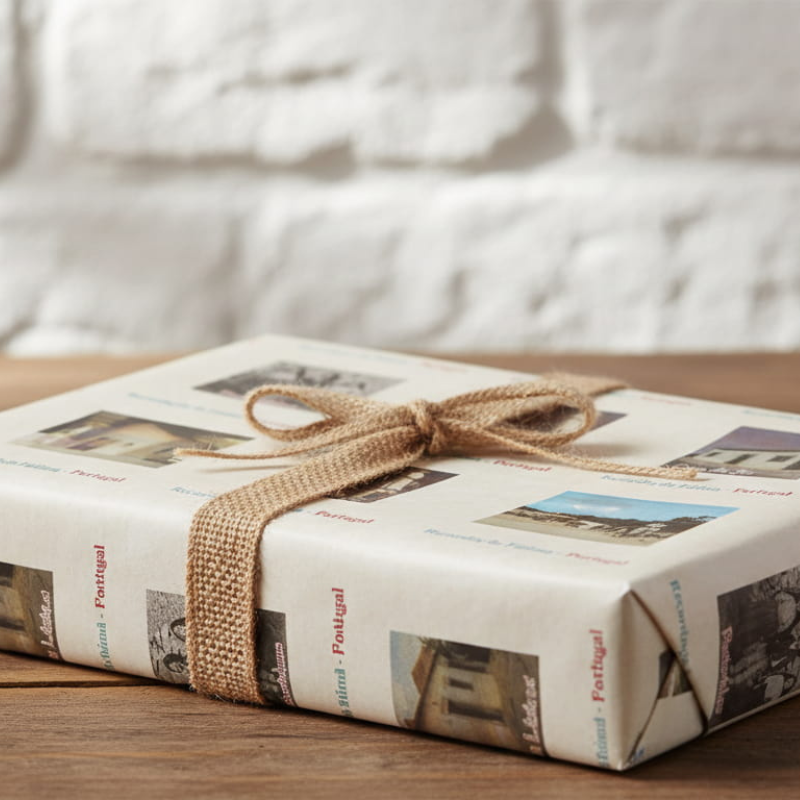 Zawiń swoje prezenty w Papier do pakowania Lembrança de Fátima – z motywami religijnymi inspirowanymi portugalskim sanktuarium. Doskonały do prezentów sakralnych, pamiątkowych lub duchowych. Idealny zarówno na małe upominki, jak i większe paczki.