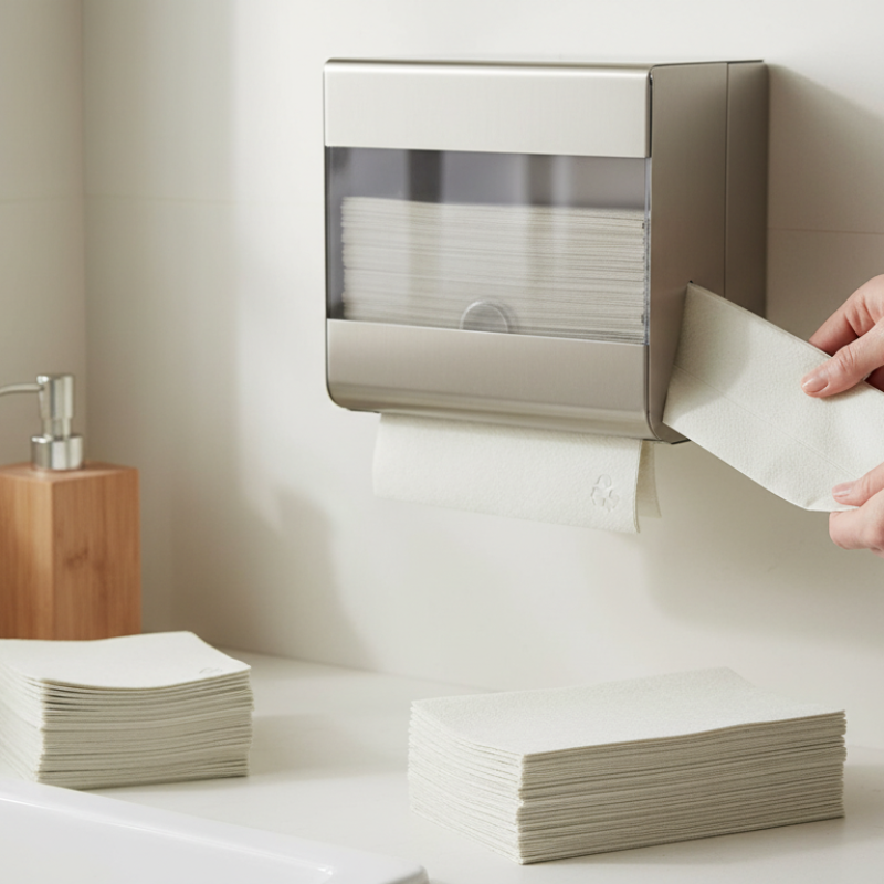 Ręczniki papierowe zygzak z recyklingu, idealne do łazienek i kuchni.