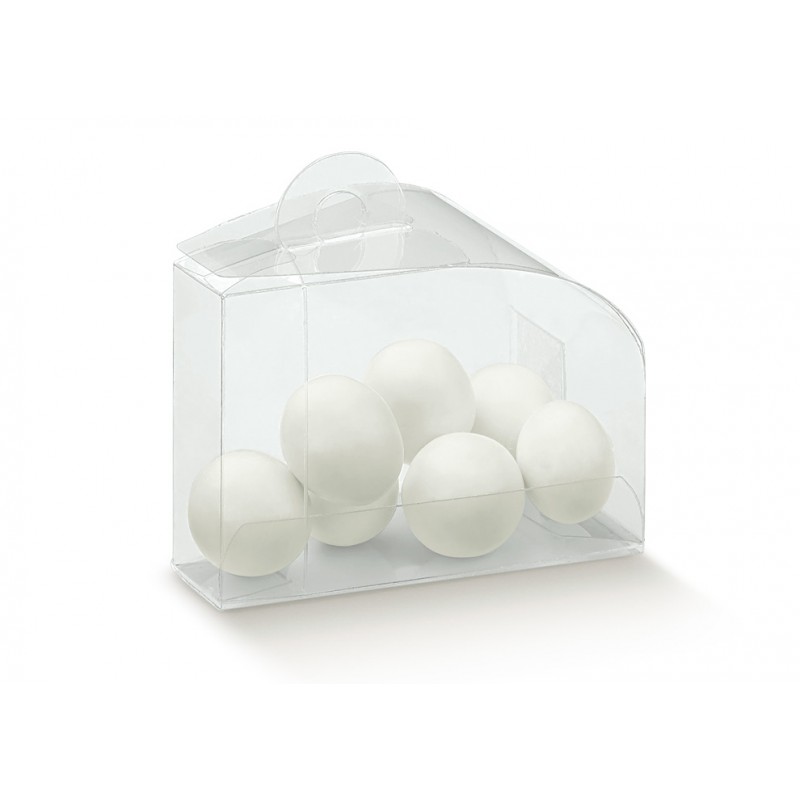 Przezroczyste pudełko PVC w kształcie Dolcetto. Doskonałe na praliny, słodycze i wypieki.