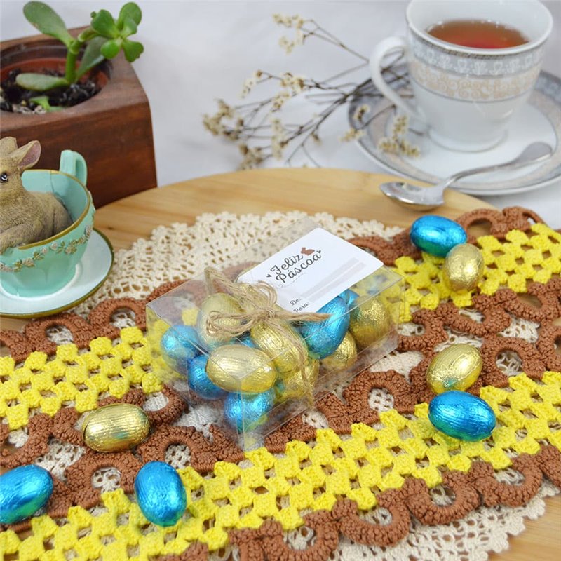 Przezroczyste pudełko PVC z uchwytem, idealne na pralinki i wyroby cukiernicze.