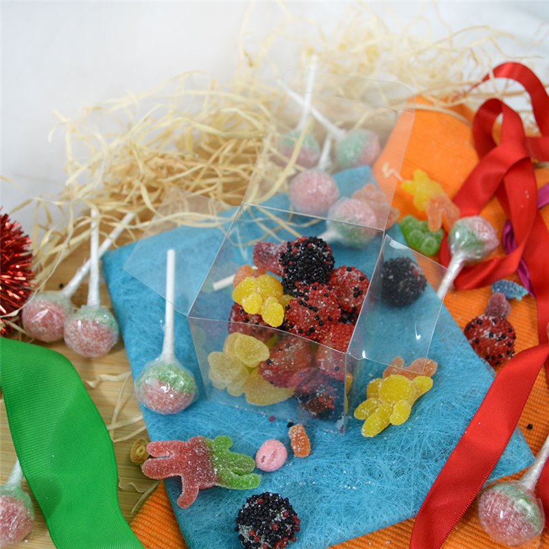 Przezroczyste pudełko z acetatu 60x60x60mm – idealne na słodycze i drobne prezenty.