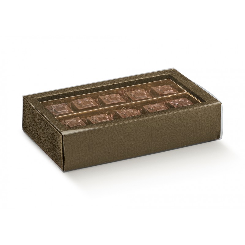 Wkładka z brązowej ekoskóry z eleganckim wykończeniem. Idealna do bezpiecznego i stylowego eksponowania prezentów średniej wielkości.