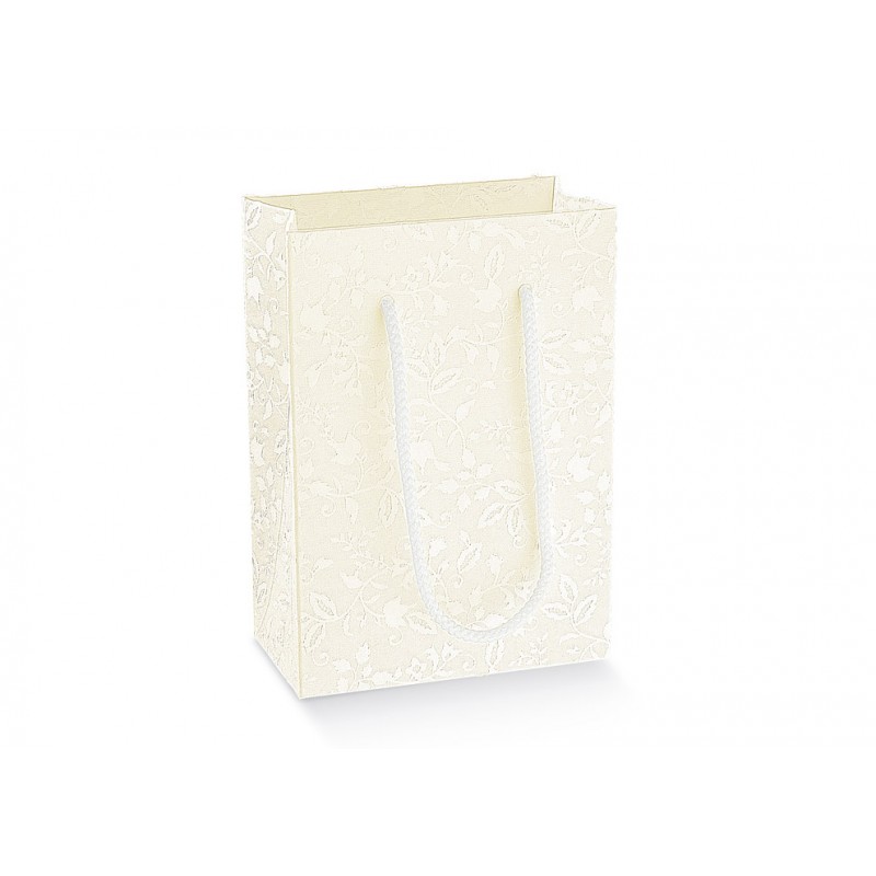 Praktyczne i eleganckie pudełko typu shopper box z sznurkami w wykończeniu harmony bianco na różne okazje.
