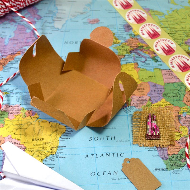 Pudełko na prezent - Miniastuccio 50x50x20 Kraft z automatycznym systemem składania, idealne do pakowania małych prezentów, słodyczy lub pamiątek. Naturalne wykończenie kraft nadaje mu ekologiczny i estetyczny wygląd.