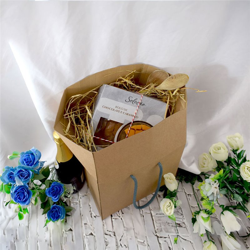 Caixa de cartão cúbica premium com pegas de cordão. Ideal para presentes personalizados e ocasiões especiais.
