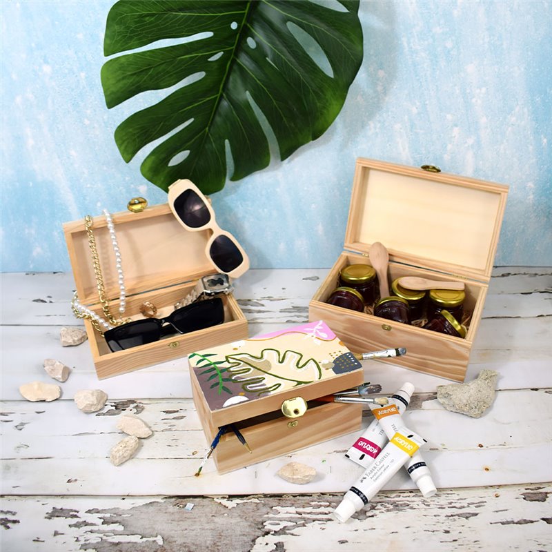 Caixinha de madeira Rebelde Treasure com 180×103×46 mm, concebida para unir elegância e praticidade. Inspirada no formato de um pequeno baú ou cofre, é perfeita para armazenar e apresentar itens gourmet de forma requintada.