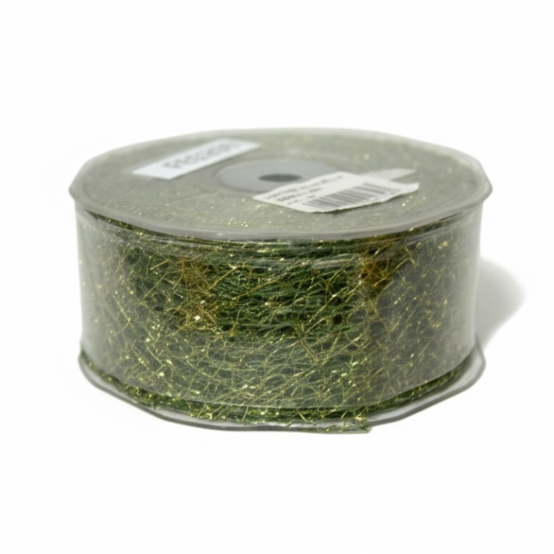 Fita teia verde com fios dourados 38mm com laterais aramadas para moldar facilmente