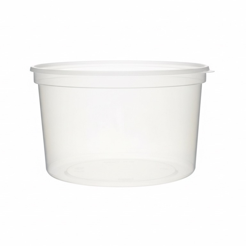 Taça plástica branca 500ml com tampa, ideal para take away de sopas.