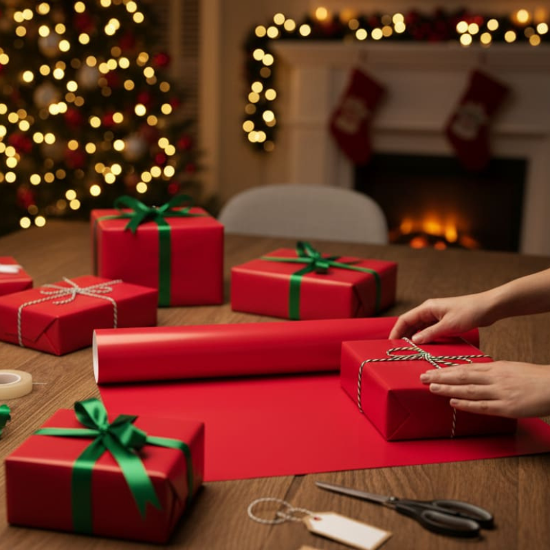 Papel de embrulho ecológico liso em vermelho. Ideal para embalagens elegantes e sustentáveis.